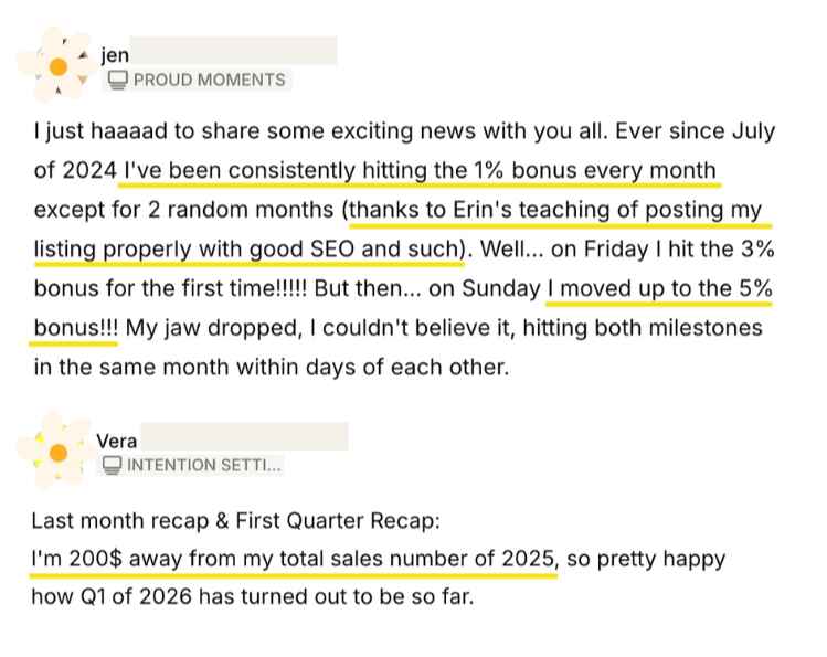 What members say about Erin Kendal's Power Sellers Academy...