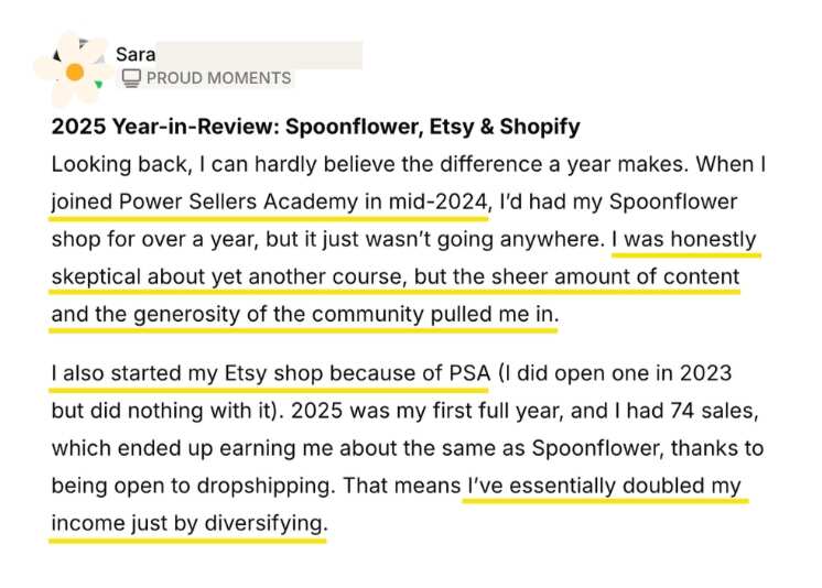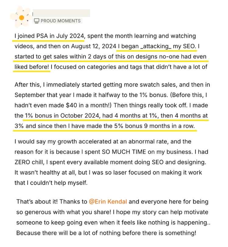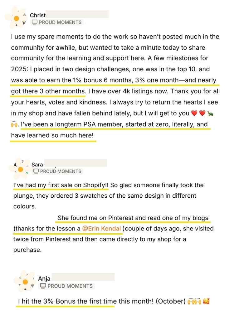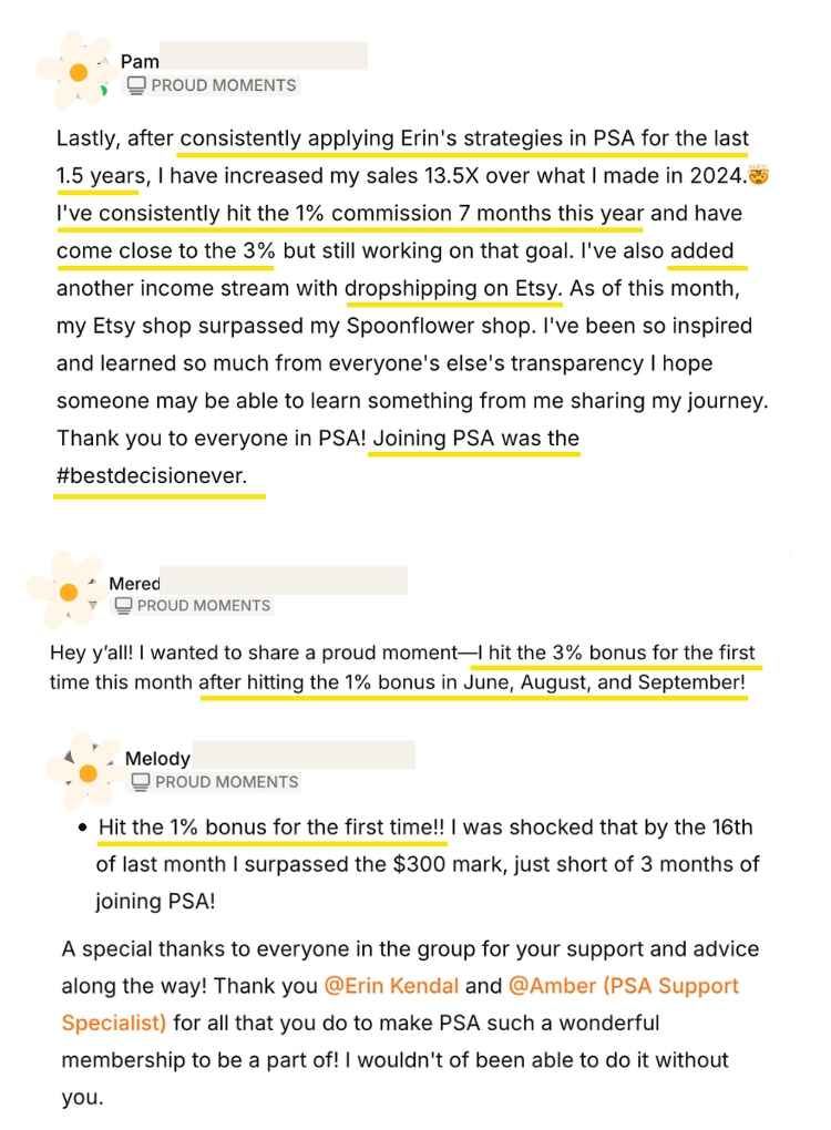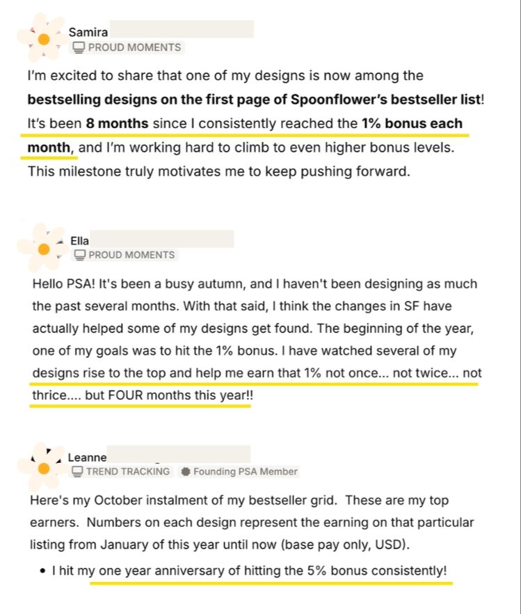 From optimizing keywords to creating trend-driven collections, our members share their wins, insights, and progress. This page is full of inspiring feedback from our community of designers.
