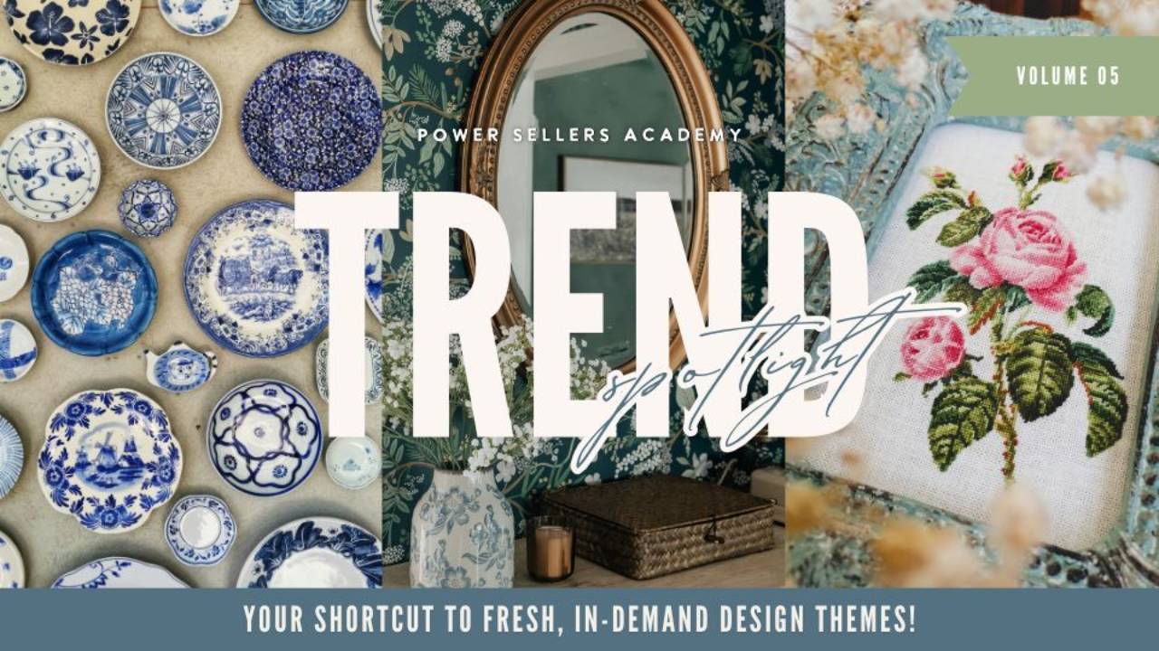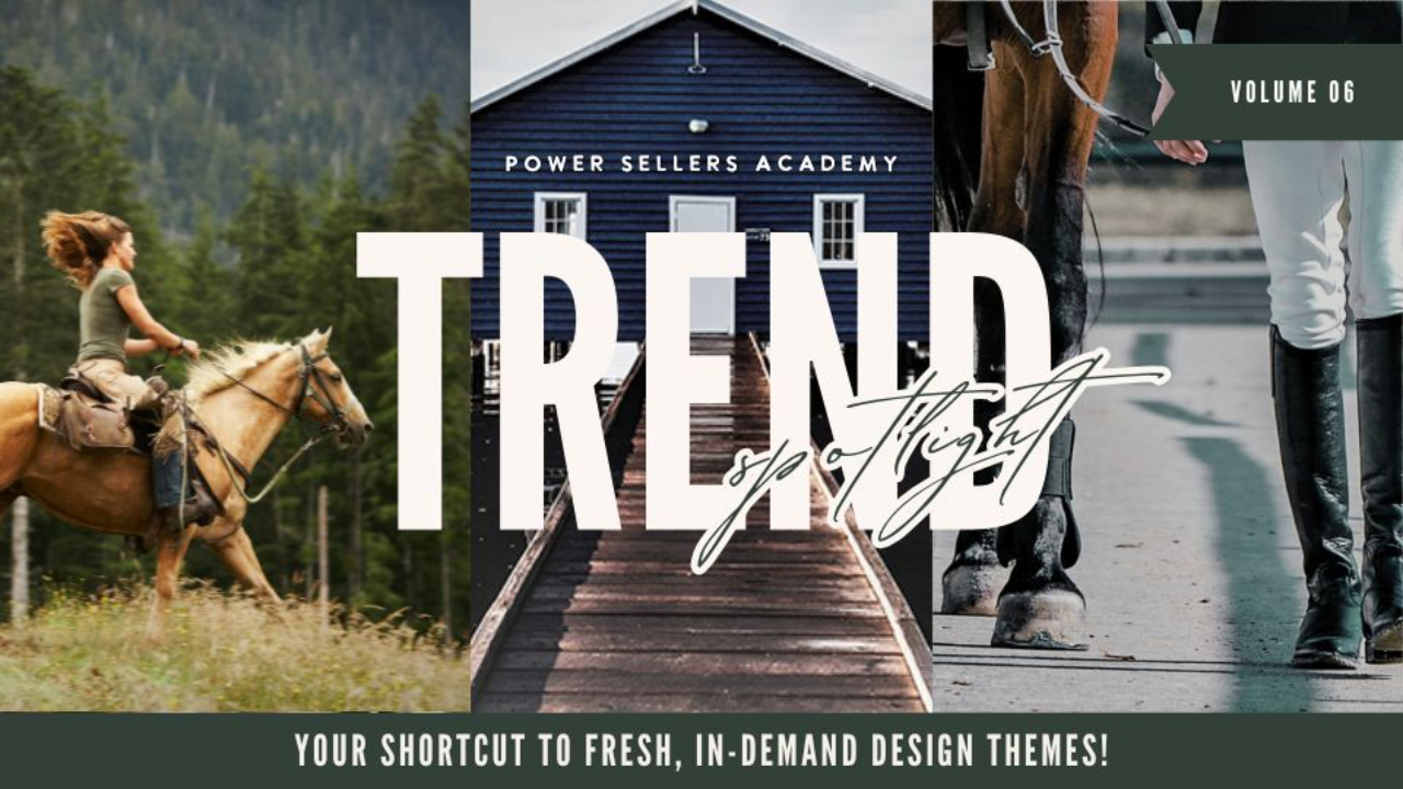 Each Trend Spotlight focuses on design themes with long-term commercial appeal — not fleeting pop culture trends. The motifs, colors, and product examples are chosen because they can sell for months or even years, and can be refreshed in new ways over time.